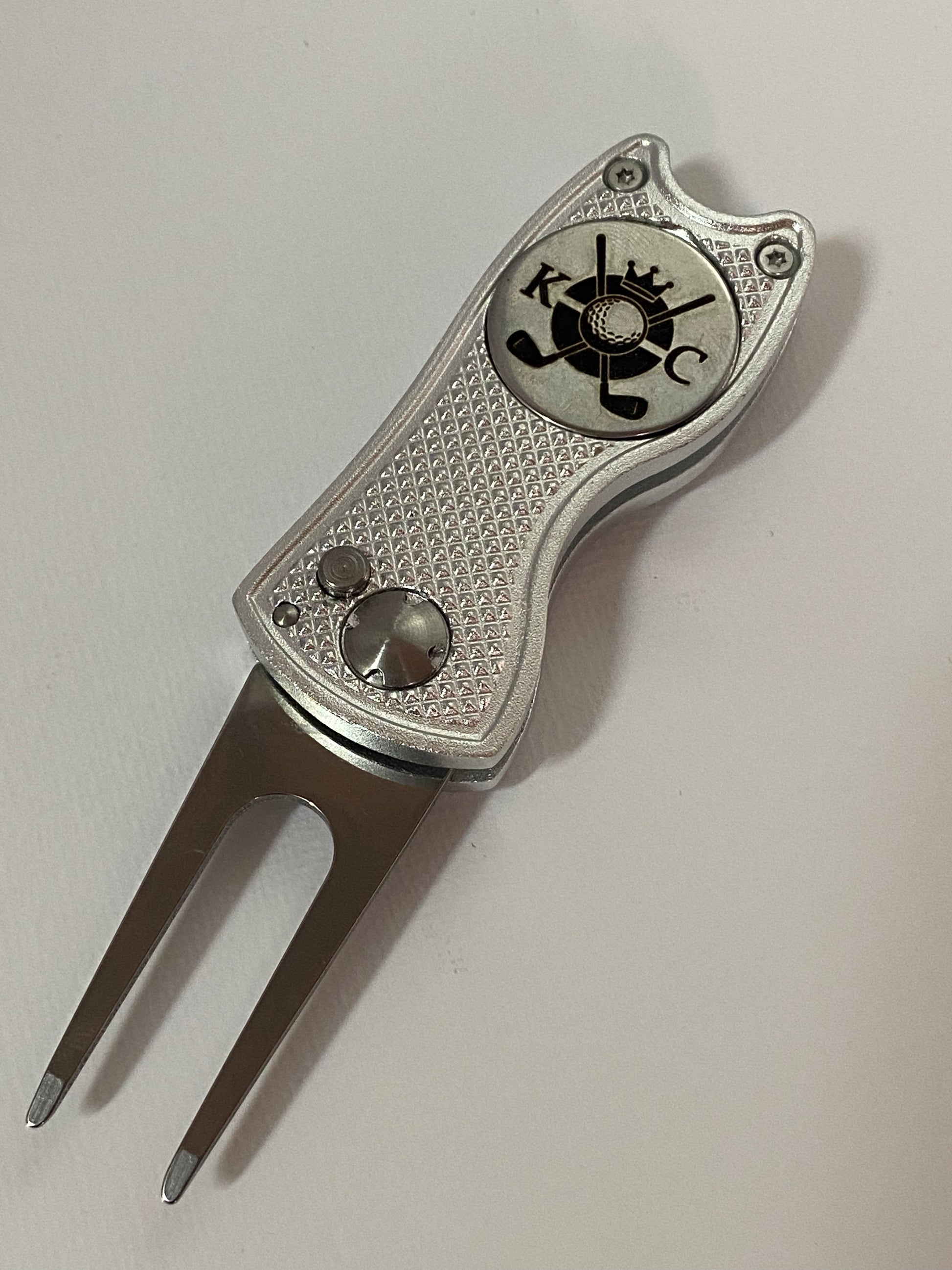 Personalised Flick-Out Golf Divot Tool with Engraved Ball Marker